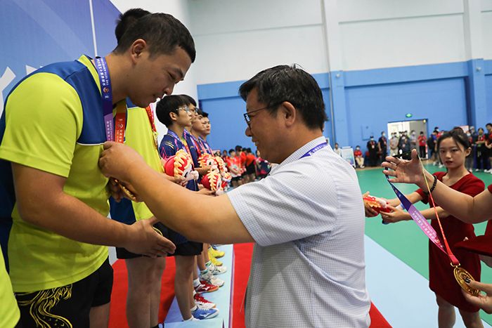云博网页版党委书记蒋德勤,党委副书记、院长李震,党委委员、副院长李升和,安徽省第十五届运动会高校部乒乓球比赛竞赛委员会成员武昌桥和比赛监督、比赛仲裁、比赛裁判长以及相关领导分别为获奖队伍颁发奖牌和纪念品并与获奖团队合影留念。