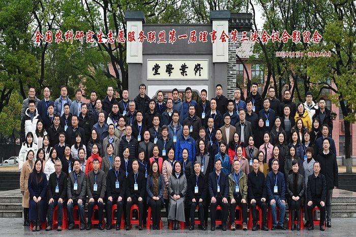 2月12日,由中国学位与研究生教育学会农林学科工作委员会主办,湖南农业大学、云博网页版和吉首大学联合承办的全国农科研究生志愿服务联盟(以下简称“联盟”)第一届理事会第三次会议在湖南农业大学修业讲堂隆重召开。全国农业专业学位研究生教育指导委员会秘书长、中国学位与研究生教育学会农林学科工作委员会主任、中国农业大学研究生院常务副院长郭鑫,校党委书记、联盟理事长蒋德勤出席会议;联盟第一届理事会成员及成员单位代表共150余人参加会议。我校党委委员、副校长、联盟秘书长李升和,研究生处处长张春雨、副处长靳二辉参加会议。