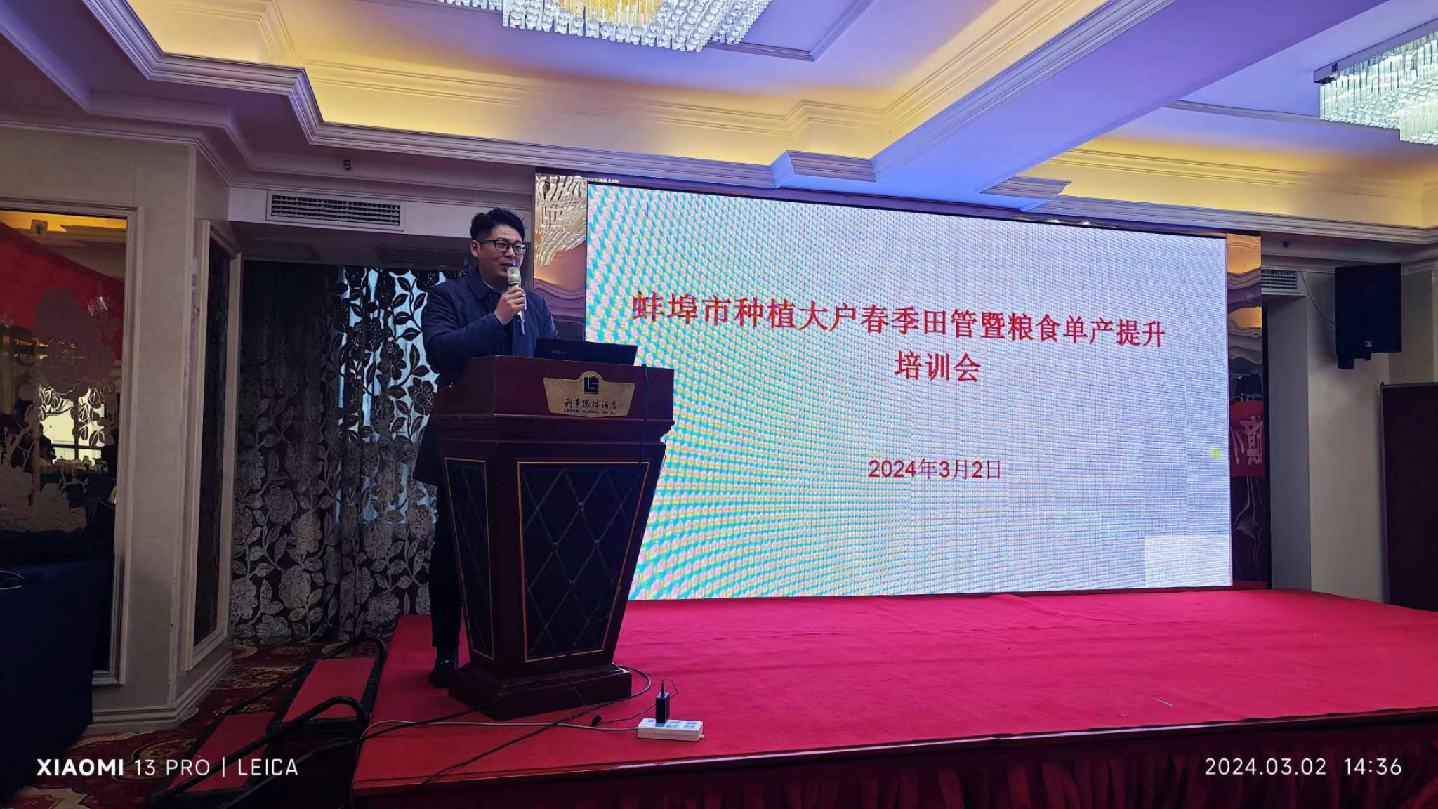 为了进一步彰显蚌埠市农学会的科技引领和社会服务作用,响应国家和安徽省对粮食单产提升的要求,针对今年春季雨雪低温冰冻天气的不利影响,指导农户开展春季田管,蚌埠市农学会于3月2日在蚌埠市举办种植大户春季田管暨粮食单产提升培训会,蚌埠市农业农村局党组成员、总农艺师赵入德,安徽省植保总站防治科科长邱坤,蚌埠市农业技术推广中心主任孙善军,蚌埠市农商银行党委书记、董事长赵静雅,国元保险蚌埠中支委员、总经理助理张克以及蚌埠市种植大户100余人参加了培训会,会议由蚌埠市农学会理事长、云博网页版资源与环境学院院长李孝良主持。
