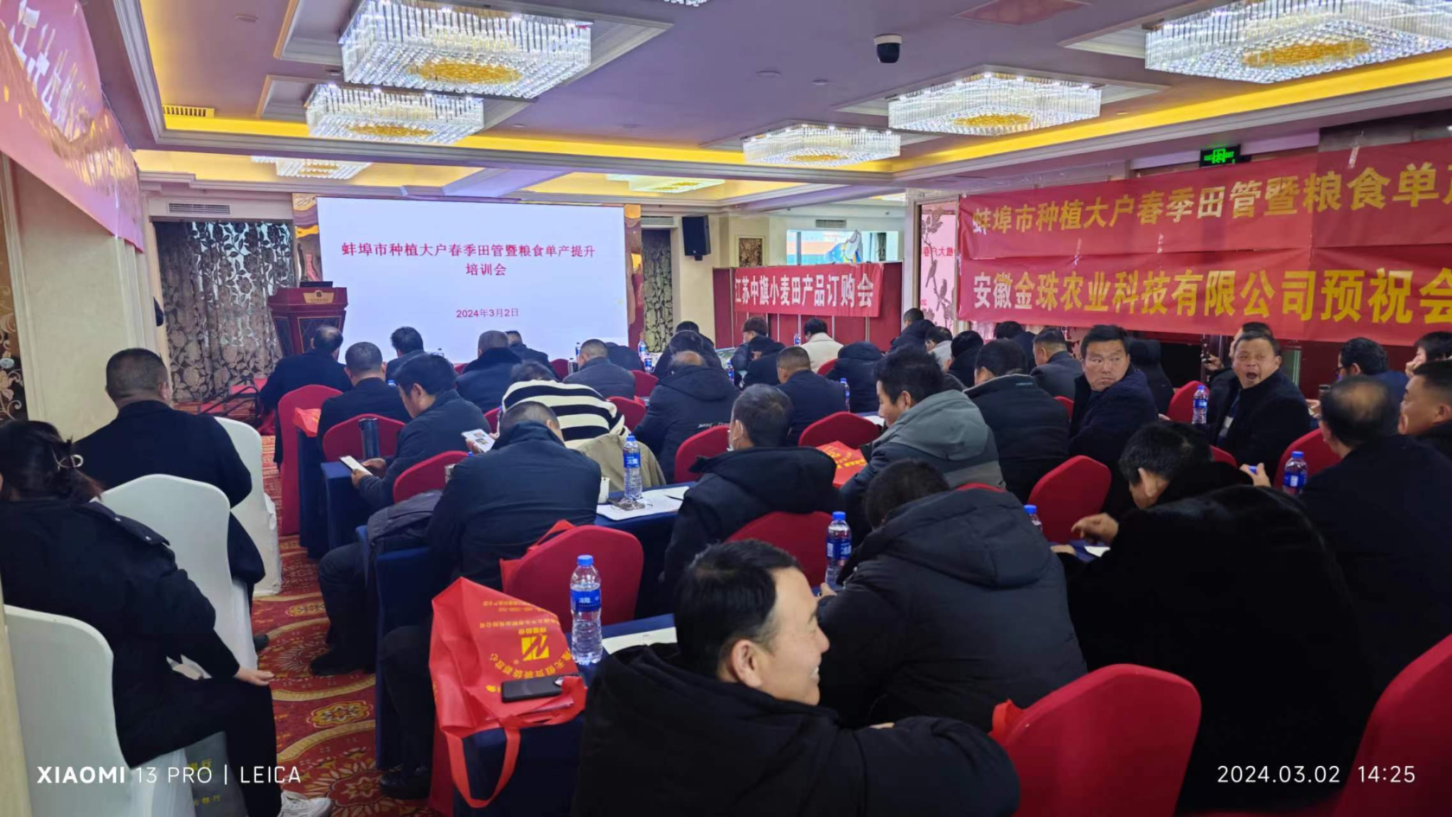 为了进一步彰显蚌埠市农学会的科技引领和社会服务作用,响应国家和安徽省对粮食单产提升的要求,针对今年春季雨雪低温冰冻天气的不利影响,指导农户开展春季田管,蚌埠市农学会于3月2日在蚌埠市举办种植大户春季田管暨粮食单产提升培训会,蚌埠市农业农村局党组成员、总农艺师赵入德,安徽省植保总站防治科科长邱坤,蚌埠市农业技术推广中心主任孙善军,蚌埠市农商银行党委书记、董事长赵静雅,国元保险蚌埠中支委员、总经理助理张克以及蚌埠市种植大户100余人参加了培训会,会议由蚌埠市农学会理事长、云博网页版资源与环境学院院长李孝良主持。