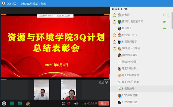 谢越介绍了2016级3Q计划实施情况,并通过视频向各位同学们展示了3Q计划取得的成果。杨小晗宣读《云博网页版资源与环境学院关于3Q计划的表彰决定》及双创计划获奖名单。获奖代表赵壮壮发言,表示同学们的成功永远都离不开老师的辛勤付出与指导。