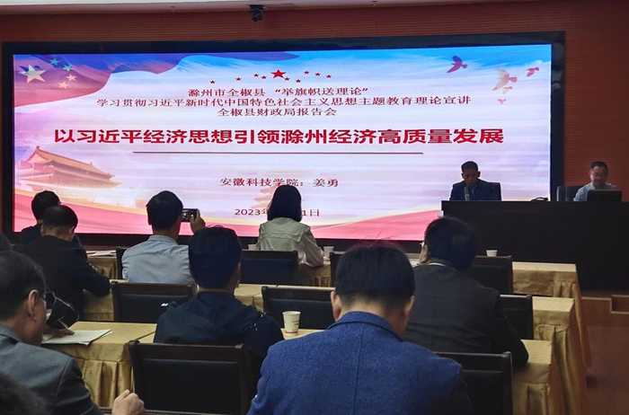 近日,全椒县财政局举行学习贯彻习近平新时代中国特色社会主义思想主题教育专题报告会。财经学院姜勇博士应邀作报告。全椒县财政局全体干部职工参加学习,党组成员许其松主持报告会。