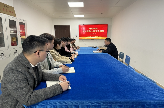 为深入学习贯彻两会精神,引导全院师生深刻领会、准确把握两会精神实质,切实增强广大师生的政治责任感和历史使命感,3月19日,财经学院在西辅楼212召开了学习贯彻全国两会精神专题会议,并积极组织各班级学生开展了一系列传达学习活动。