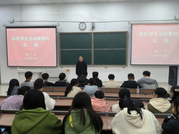 讲座从“学生干部忙什么”“学生活动有哪些”“学生活动怎么做”“做完活动想什么”四个版块展开。他指出,学生干部作为联系师生的桥梁,要善谋划、强协调、重创新、抓落实。耿广汉将学生活动划分为“理想信念教育”“思想道德教育”“学风考风建设”等十三大类,并结合实际,畅谈活动策划如何与时俱进,方案内容如何集思广益,组织活动如何多角度宣传,实施过程如何因势而变,总结活动如何得失兼顾等方面心得体会。他希望广大学生干部做到“内外兼修”,要以主动积极创造的态度,守住忠实心、平常心和耐受心,高标准、高要求、高效率落实工作任务,在学习工作实践中,练就过硬的本领,真正成为广大同学身边的旗帜、榜样和表率。
