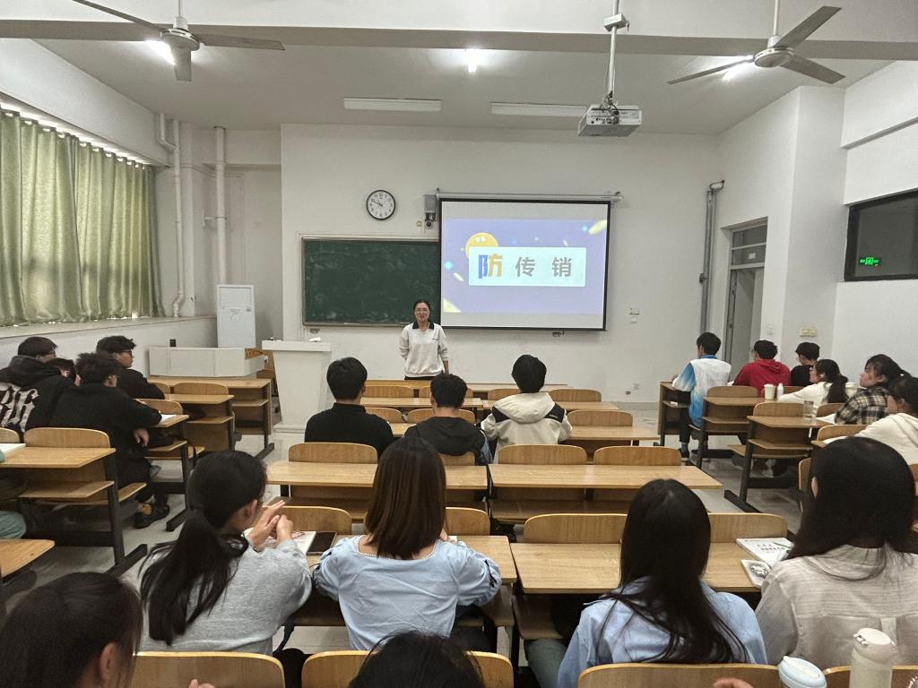 班会全覆盖,防范传销我先行。各班级辅导员围绕传销类型,传销模式,典型案例,防范方法等内容展开阐述,并采用观看反传销宣传视频、传销案例分析讨论等形式来增强同学们对新型传销的认识,希望同学们拒绝传销,争做智慧青年,严于律己,敢于斗争,不给传销留下生存余地。