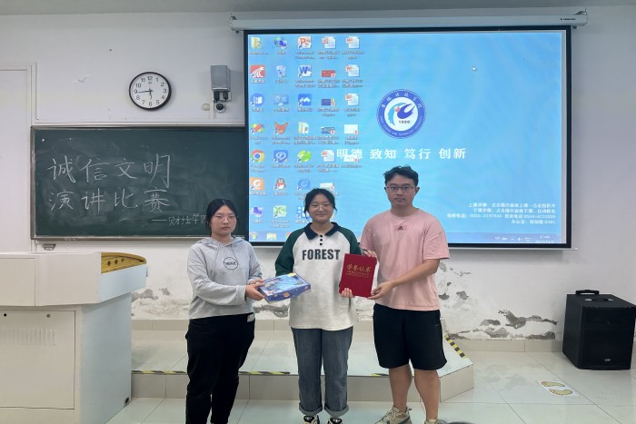 各位选手结合自身对诚信和文明的认识,从古今中外的历史典故中概述了树立诚信意识的重要性,着眼新时代的青年担当,用真挚的感情和生动的故事,从不同角度诠释了新时代大学生对诚信的理解和感悟,阐述了诚信对个人、社会、国家的重要性。选手们富有感情的演讲获得了各位评委和观众的一致好评。经过激烈的追逐,财管236韩典典凭借出色的表现荣获一等奖。