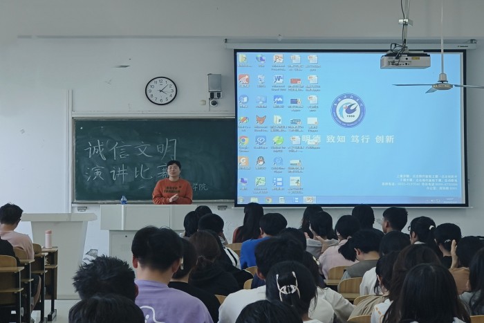 为进一步加强诚信文明建设,传承中华民族传统美德,11月4日下午,财经学院在致知楼C208教室举办了“诚信文明”主题演讲比赛。学院党政办公室主任张俊、专职辅导员尹成超全程观看并指导比赛。