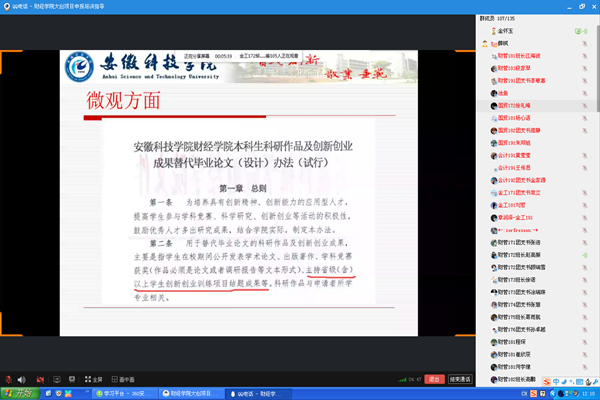 4月3日中午,财经学院通过QQ群课堂召开大学生创新创业训练计划项目申报暨电子商务“创新、创意及创业”挑战赛线上培训会。院党总支书记骆海邦、副书记张传德及全体辅导员出席会议。学院非毕业班团支书、班长,院学生会实创部、院创业协会全体成员及有志于创新创业研究与实践的学生共130余人参加会议。会议由副院长金怀玉主持。