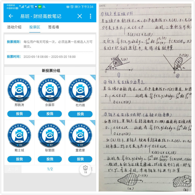为进一步提升大学生高数学习的积极性和主动性,浓厚学习氛围,5月15日至5月20日,数学学习与交流协会以“停课不停学,高数最有趣”为主题,结合易班网络平台举办此次高数笔记大赛。