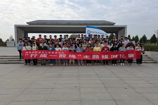 11月1日上午,财经学院在龙湖校区南大门内侧广场举办2020级新生“拧成一股绳”主题拔河比赛。