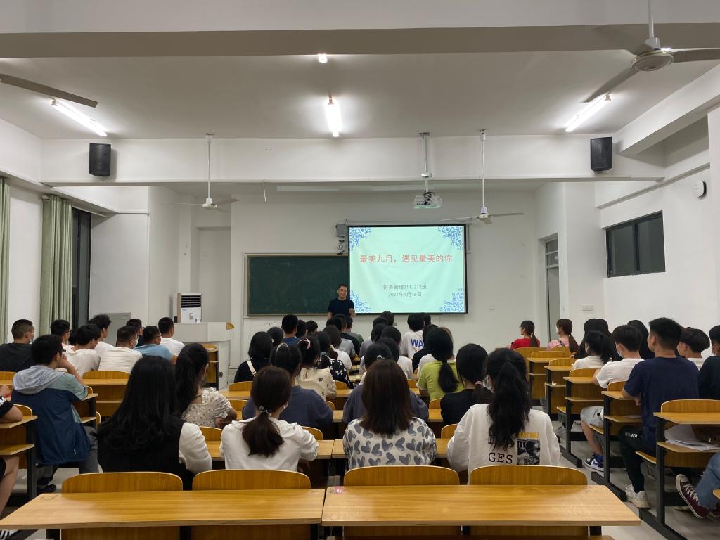 为引导新生们尽快适应大学,规划好在校期间的学习生活,9月16日晚,财经学院辅导员召开了以“生活适应与安全教育”为主题的第一次班会。