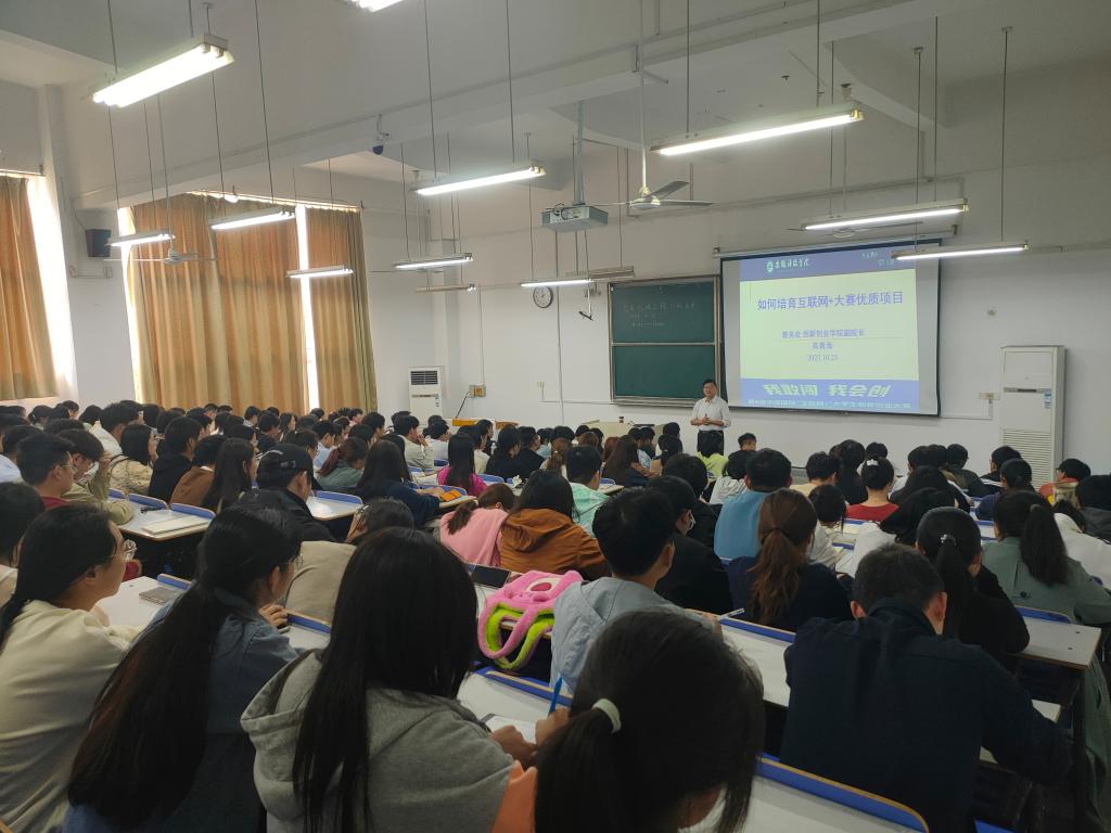 为进一步做好第十届“互联网+”大学生创新创业大赛项目培育动员,提升师生备赛能力。10月25日下午,“互联网+”大赛项目培训会在凤阳校区求知楼A106顺利召开。教务处副处长、创新创业学院副院长高青海出席会议,凤阳校区“互联网+”大赛培育项目团队成员近200人参加培训。