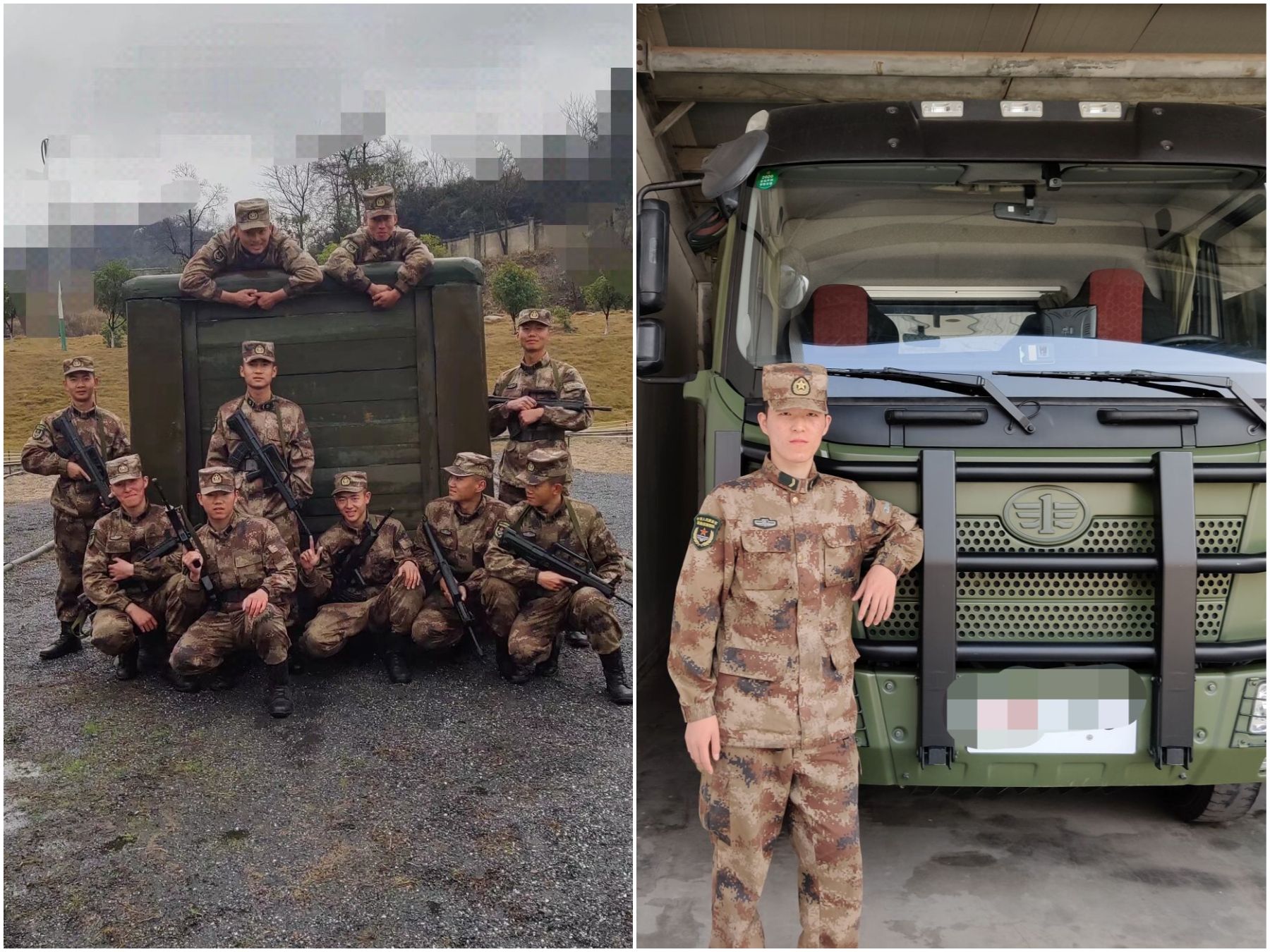 在大一结束后,于2019年9月报名参军,服役于东部战区陆军某旅。通过索降、攀登、游泳、跳伞等科目对身体素质和心理素质进行双重锻炼,反复超越自己的极限。