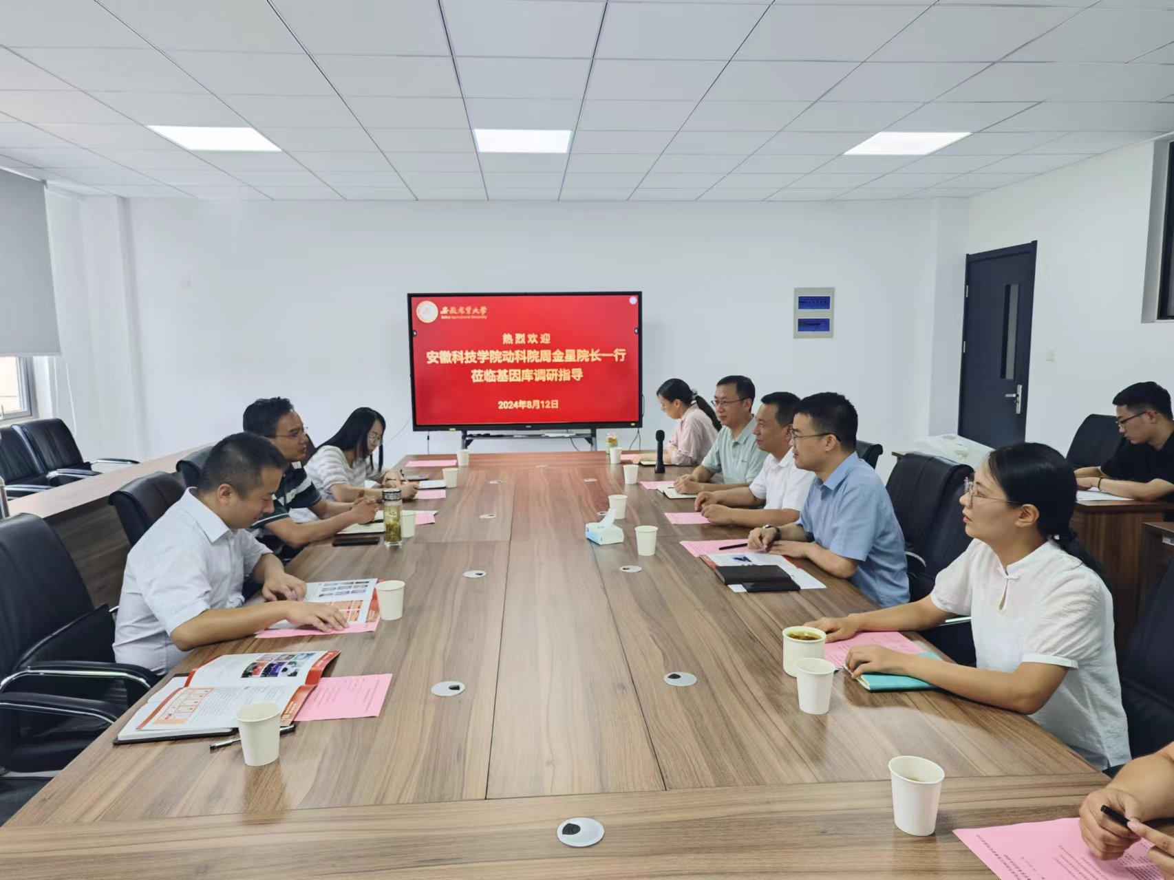 会上,张子军对周金星一行来院考察交流表示热烈欢迎,他简要介绍了安徽农业大学动物科技学院的整体情况,凌英会介绍了中部地区基因库建设运行情况,曹祖兵介绍了安徽省家畜基因库运行机制、遗传材料采集制作保存和出入库管理规定以及学院现有团队等情况。周金星对动物科技学院在基因库建设方面开展的工作表示充分肯定,同时希望双方围绕人才培养和科学研究加强合作交流。