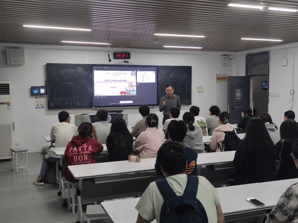 为进一步扩大学院研究生教育影响力,吸引生命科学类、生物类相关专业的优质生源,9月18日,动物科学学院党委副书记、副院长周金星(主持工作)前往蚌埠学院,面向该校生物与食品工程学院2022级本科生,开展动物科学学院2026年硕士研究生招生专场宣讲会。