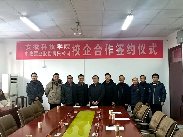 12月11日下午,我校动物科学学院与中牧实业股份有限公司武汉华罗分公司校企合作签约仪式在学院会议室顺隆重举行。中牧股份预混料事业部总经理助理张磊、中牧股份武汉华罗分公司总经理吕博文、中牧股份预混料业务部总经理胡四化、武汉华罗分公司安徽区域经理于洪波,动物科学学院党委书记姚勇、党委纪检委员蔡治华、院长助理贺绍君,校招生就业处秘书陆双双,毕业班班主任出席仪式。部分班级学生代表参加仪式。仪式由学院党委秘书胡文靖主持。