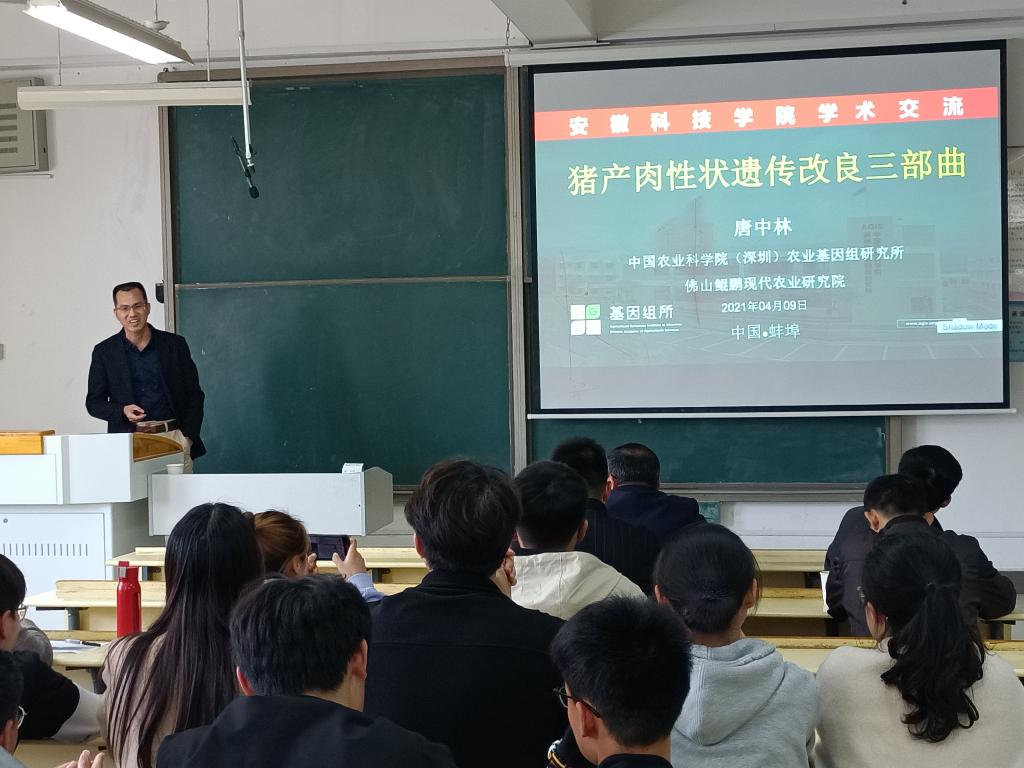 4月9日下午,《云博网页版学报》期刊发展研讨会系列学术报告在凤阳校区新知楼A403举行。中国农业科学院“猪基因组设计育种创新团队”首席科学家、中国农业科学院(深圳)农业基因组研究所动物基因组研究中心主任、博士生导师唐中林应邀来校作学术报告。报告由动物科学学院副院长华金玲主持,学院部分教师、养殖领域硕士研究生及动物科学、动植物检验检疫等专业本科生聆听报告。