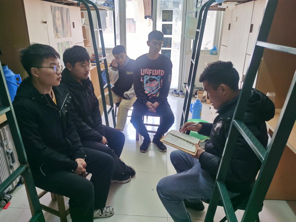 3月31日晚,动物科学学院党委副书记、纪委书记汤帅带领全体辅导员深入学生公寓,深入了解疫情期间同学们的线上线下学习、心理和生活状况,同时开展疫情防控期间宿舍防疫工作检查和防疫知识宣传。走访过程中,辅导员与学生亲切交谈,了解学生的思想动态,倾听学生的诉求,并针对学生提出的问题,给予解决办法。叮嘱学生要严格按照学校防疫工作通知要求,及时关注学校防疫工作动态,配合学校做好相关防疫工作。告诉学生要勤开窗通风,佩戴好口罩,勤洗手,做好自身体温监测和晨、午(晚)上报,保持宿舍卫生清洁、通风,不互相串门,注意个人防护。
