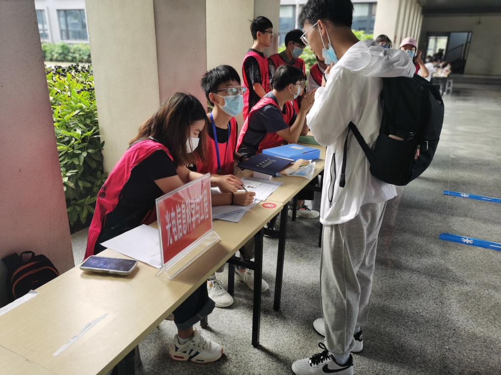 丹桂飘香金秋季,又是一年迎新时。崭新的晨光,迎来全新的开始,9月14日,电气与电子工程学院迎来了2022级入校报道的新生,从校门口到学院新生接待处,身着红背心的志愿者让本就活力四射的校园更加生机勃勃。