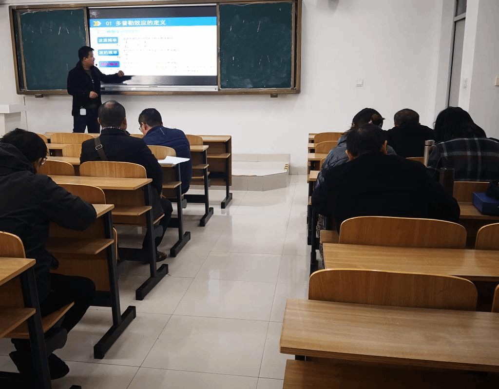 青年教师张樊伟博士以多普勒效应为题,向各位教师做了一场非常精彩的微课教学展示。张博士教学设计合理,课件制作精美,讲课精神饱满,内容熟练且理论联系实际,语言表达清楚。张博士的指导教师李勇老师做了认真细致的指导,王玉莲和徐兵老师代表学院督导组做了点评。参加活动的其他几位教师分别提出了建议和意见。