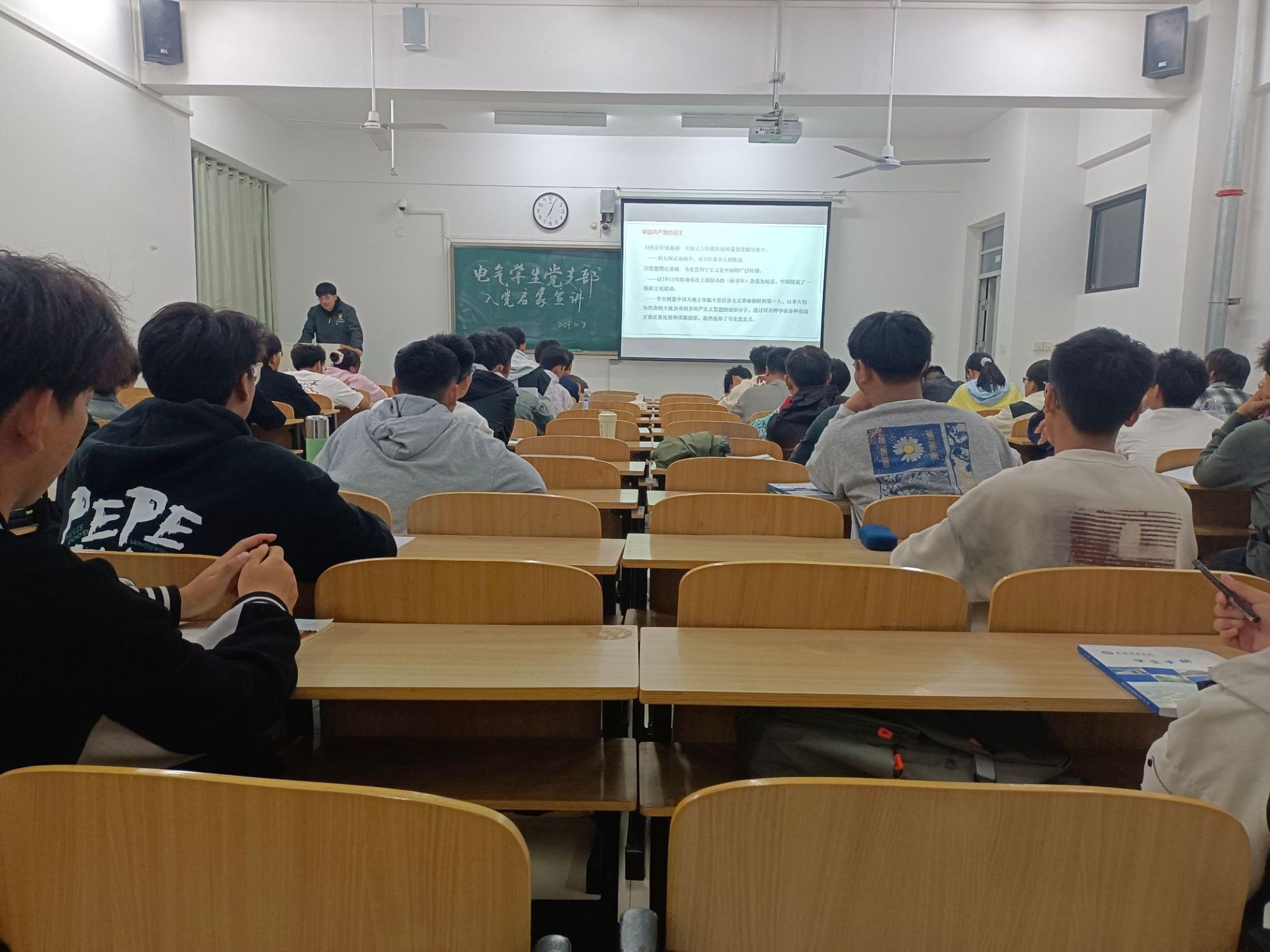 为引导大学生积极向党组织靠拢,在2024级新生群体中加强党的二十届三中全会精神学习,2024年10月8日晚,电气专业学生党支部组织学生党员在2024级新生班级中开展入党启蒙教育。