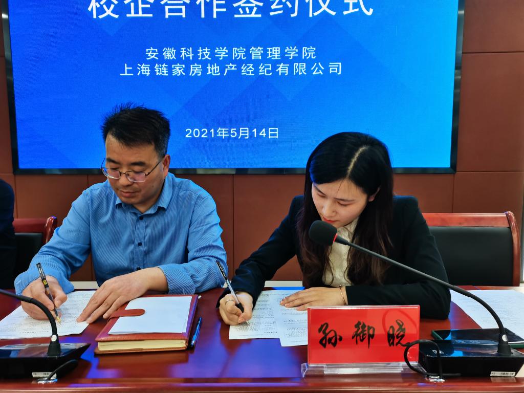 赵伟峰与孙御晓共同签署了《云博网页版与上海链家房地产经纪有限公司校企合作协议书》。