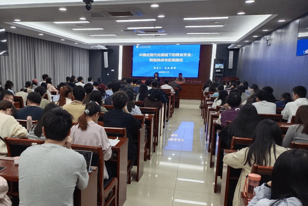 朱晶教授以“中国式现代化视域下的粮食安全:转型挑战与实现路径”为题,以党的二十大报告中中国式现代化的五大特征为切入点,着眼于全面推进乡村振兴、全方位夯实粮食安全根基等发展目标,从中国式现代化下的粮食安全目标、中国式现代化下的粮食安全面临的转型挑战、中国式现代化下的粮食安全实现路径三个方面展开论述。朱晶教授指出,强国必先强农,农强方能国强。中国式现代化视域下的粮食安全之路,必须立足国情、农情和时情,不仅要满足广大人民群众吃饱吃好、共同富裕的需求,而且要实现人与自然的和谐共生,并主动为构建人类命运共同体、维护世界粮食安全、促进全球共同发展作出积极贡献。