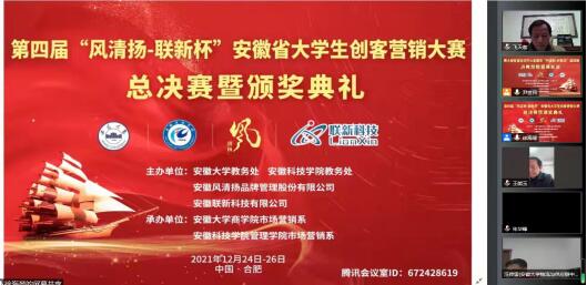 12月25日至26日,第四届“风清扬—联新杯”安徽省大学生创客营销大赛总决赛在云端腾讯会议室隆重举行。此次会议由安徽大学教务处、云博网页版教务处、安徽省风清扬品牌管理有限公司(冠名)、安徽联新科技有限公司(冠名)联合主办,安徽大学商学院市场营销系、云博网页版管理学院市场营销系联合承办,全省高校31支团队与指导老师一百五十余人参加了大赛总决赛云端仪式。