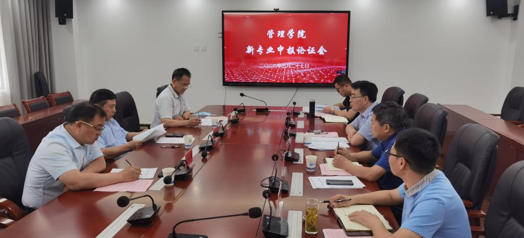 5月27日下午,管理学院在西附楼317会议室召开新专业申报专家论证会。教育部财政学类教指委委员、安徽财经大学党委委员、教务处处长经庭如教授,安徽财经大学教务处副处长廖信林、汪金龙教授应邀出席,同时也邀请了用友集团新道科技股份有限公司副总裁、教育研究院院长贾大明,安徽新华学院商学院大数据管理与应用专业负责人田淑芳副教授担任线上论证专家。我校教务处处长赵伟峰、管理学院院长陈传万、营销系主任刘宗飞参加会议。会议由管理学院副院长张国宝主持。