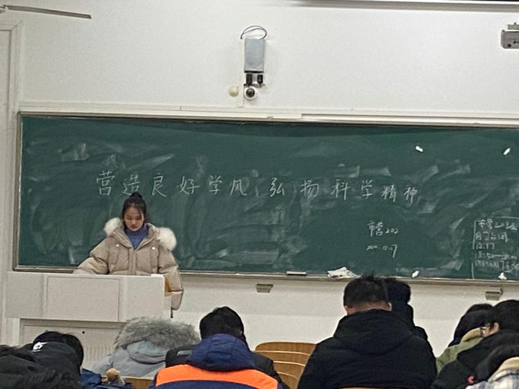 各班级积极发挥主题口号“坚守科研诚信、杜绝学术不端”引领作用,重点围绕《关于进一步加强科研诚信建设性的若干意见》、《关于进一步弘扬科学家精神加强作风和学风建设的意见》、《教育部高等学校预防与处理学术不端行为的办法》等一系列加强作风学风建设政策文件,以主题团课的形式组织多参与、多认知、多学习,端正学风。