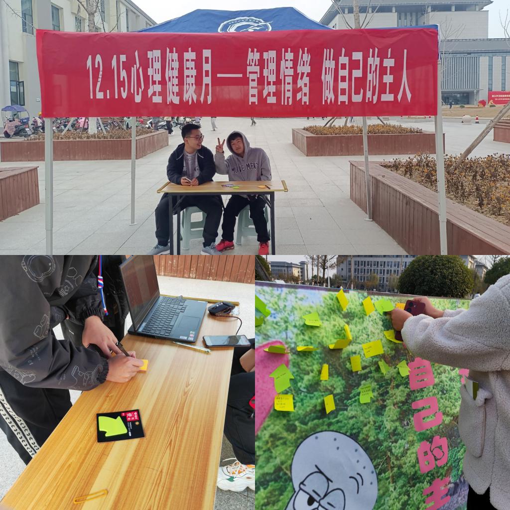 为进一步推动大学生心理健康教育工作,普及心理健康知识。根据学校和学院心理育人工作安排,近日,管理学院积极开展了以“管理情绪,做自己的主人”为主题的心理健康活动,帮助同学们增强对情绪管理的认识,提高情绪管理能力。