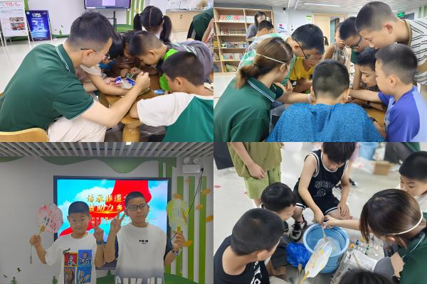 “普中华之音”团队还结合广德市的地域文化特色,将普通话推广与非遗文化传承相结合。在“暑期七彩课堂”中,团队成员们不仅向孩子们普及了普通话知识,还介绍了广德市的非遗项目。在漆扇的制作活动中,团队成员指导孩子们将古诗词写在扇面上、书签上,同时引导孩子们充分发挥想象,用古诗词来描述自己所制作的图案,一位10岁的小朋友用“大漠孤烟直,唱歌落日圆”描述小组制作的落日图,一位小朋友用“安得五彩虹,驾天作长桥”形容“彩虹图”。并通过互动体验的方式让孩子们亲身感受传统文化的魅力。这种跨界融合的方式不仅丰富了活动内容,也进一步提升了普通话推广的吸引力和影响力。