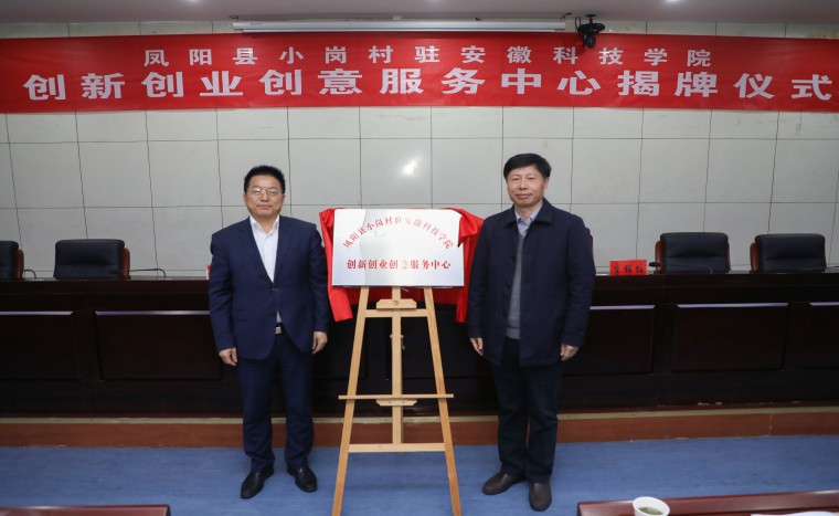 我校举行“凤阳县小岗村驻我校创新创业创意服务中心”揭牌仪式及首场专题报告会