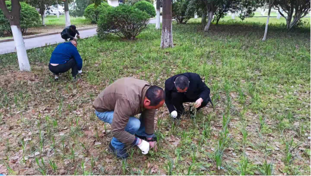 随着雨水的增多,校园草坪中长出许多杂草,影响了校园绿化带的美感和整齐度。4月7日起,组织全体党员到校园主干道边绿色带,开展“创建绿色学校,共建绿色家园”主题党日活动。
