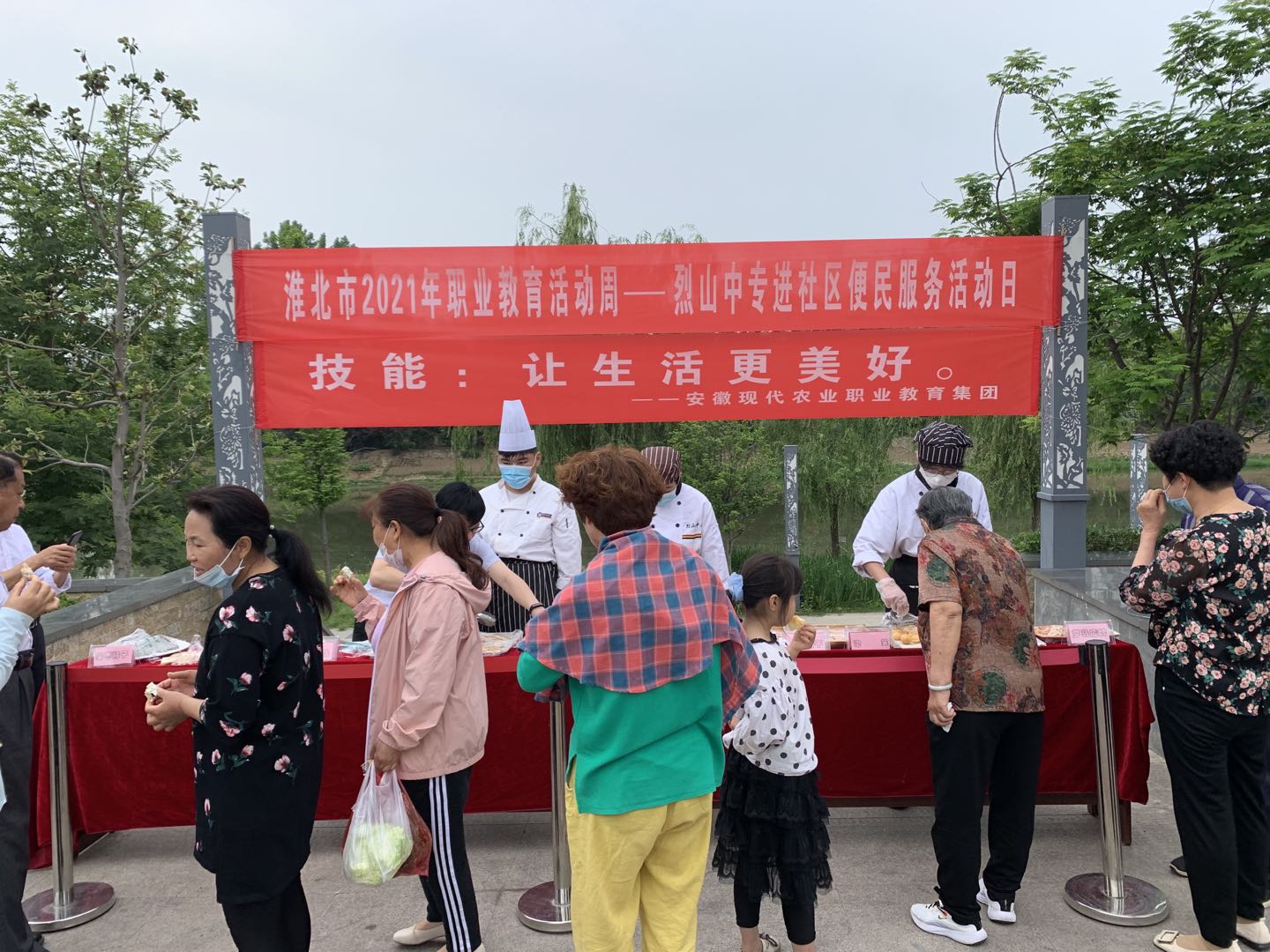 为贯彻落实全国职业教育大会精神,展示技能创造美好生活、职业教育“长入经济、汇入生活、渗入人心、融入文化、进入议程”的改革发展成果,安徽现代农业职业教育集团成员单位淮北市烈山区中等专业学校于5月23日开展了“烘焙作品的展示与品尝”进社区便民服务活动,云博网页版继续教育学院院长、安徽农业职业教育集团副秘书长杨维来,云博网页版继续教育学院张文国、王旋,烈山区中等专业学校校长王旭、副校长苏兆月等以及部分烹饪班学生参加了本次活动。