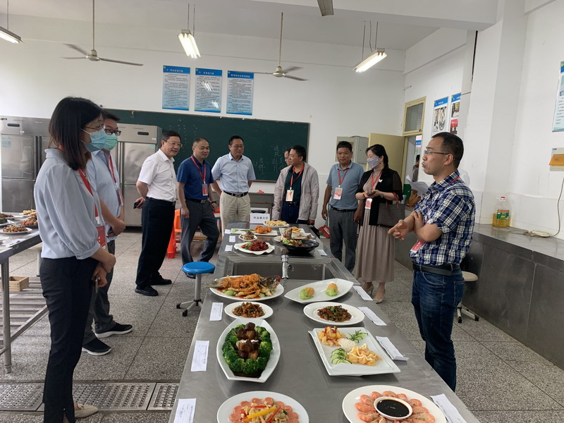 戴宗玉一行人先后抵达我校工程训练中心和食品学院烹饪实验室,依次对车工、汽车维修工、电工和中式烹调师的实操考点进行了视察和指导。戴宗玉肯定了我校首次自主举办职业技能认证实操考试的规范安排,希望我校针对已就业毕业生进行更多工种的认证。考试中,学生按照要求依次进行考核,在紧张有序的氛围中顺利完成了技能实操考试。