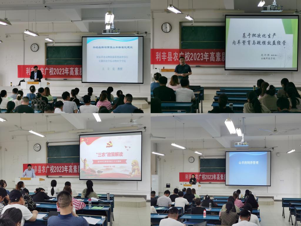 为了培养造就一批综合素质高、经营管理能力强、养殖技术过硬的黄淮山羊养殖专业家庭农场主,示范引领广大农民发展黄淮山羊养殖,发展地方优势农产品品牌,带动农民增收致富,促进农业扶贫产业转型升级、农村面貌的持续改变、农民素质不断提高,4月17日至19日,2023年利辛县高素质农民黄淮山羊养殖专业培训班在云博网页版第一报告厅开班,继续教育学院党支部书记、院长杨维来,利辛县农广校副校长李明,利辛县农广校工作人员、村干部、养殖合作社成员共60余人参加了开班典礼。