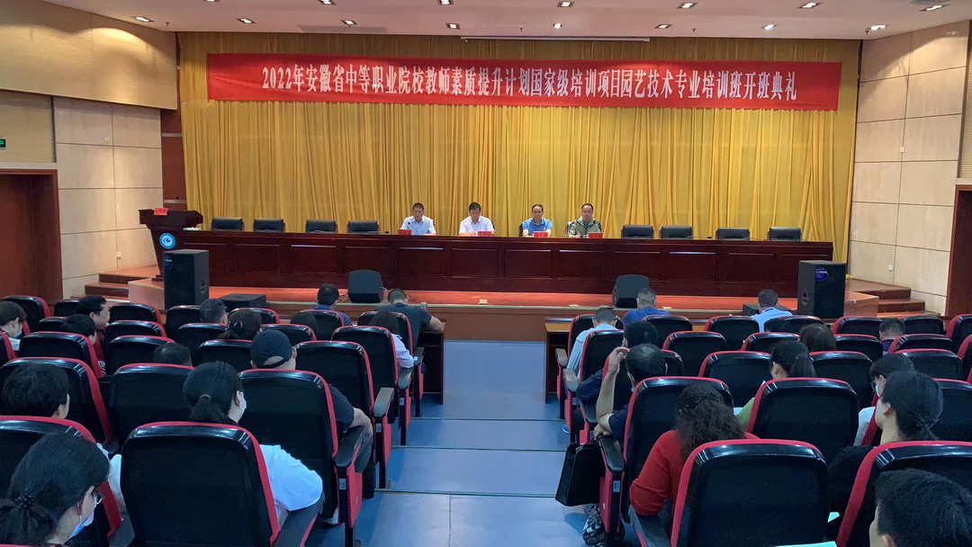 根据教育部和财政部《关于实施职业院校教师素质提高计划(2021—2025年)的通知》,5月23日上午,在云博网页版凤阳校区会议中心二楼报告厅举办了2022年安徽省中等职业院校教师素质提升计划国家级培训项目园艺技术专业培训班开班典礼。典礼由继续教育学院党支部书记、院长杨维来主持,云博网页版党委委员、副院长李升和教授、安徽工商职业学院汪贤武教授、继续教育学院副院长张文国以及相关工作人员出席开班仪式。来自全省各地市的中职骨干教师学员参加培训。