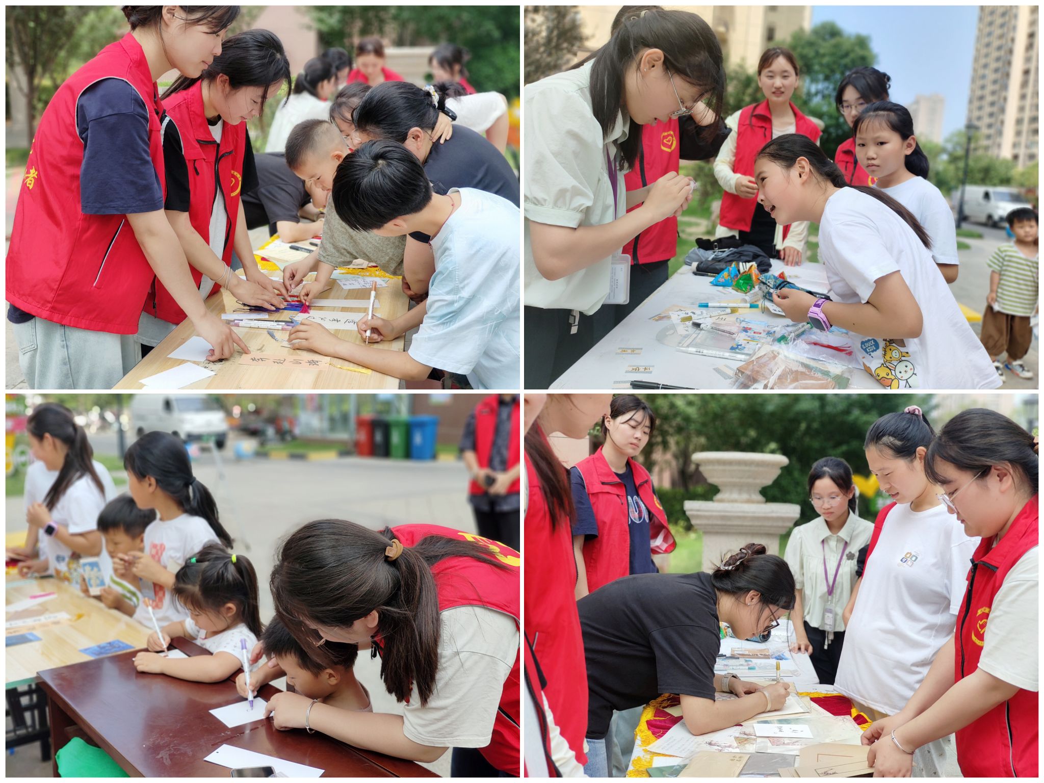 “爸妈娃齐动笔,家书里头藏爱意”家书撰写活动现场,实践团成员结合专业优势,全程贴心服务,为小区居民们提供思路引导,为不便书写者代笔书写。“我的爸爸是一名警察,我希望他能抓多多的坏人,也希望他平平安安地回家!”一位小朋友用稚嫩的童声念道,志愿者一字一句,将孩子对英雄父亲的崇拜与牵挂,郑重地誊写在信纸上。一位妈妈轻柔地握着女儿的小手,在信纸上写下对爸爸的祝福,写完后,妈妈鼓励女儿把信交给不远处的爸爸。另一边,一位年轻的父亲提笔写下对女儿的深情寄语:“亲爱的孩子,愿你健康、正直、快乐成长……”写完后,在志愿者的指导下,还进行了庄重的“心意封装”,让这封饱含父爱的书信更显珍贵。值得一提的是,现场还有不少爷爷奶奶辈的居民,有一位奶奶,在志愿者的耐心询问和引导下,慢慢回忆起与孩子相处的点点滴滴,志愿者则认真倾听,将奶奶的思念和牵挂仔细地记录下来,写成一封充满温情的家书。