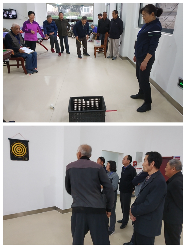 比赛中,大家纷纷拿出自己的拿手本领。定点投球比赛中,有的接连不断的投篮,有的则是拿捏准确再下手;套圈比赛中,老同志身手矫健,动不动来个飞燕展翅的姿势;平衡棒比赛中,选手们展示着自己精彩的技艺,将锻炼激情挥洒在赛场上;飞镖比赛中,老同志们则屏气凝神,找寻最佳投掷点,不管是正中靶心还是失之交臂,围观的人们都爆发出开心的喝彩声。除此之外,离退休活动中心还备有台球桌、乒乓球桌、棋牌桌等适合老年人活动的器械,在观赛的同时,其他老同志也可一试身手。