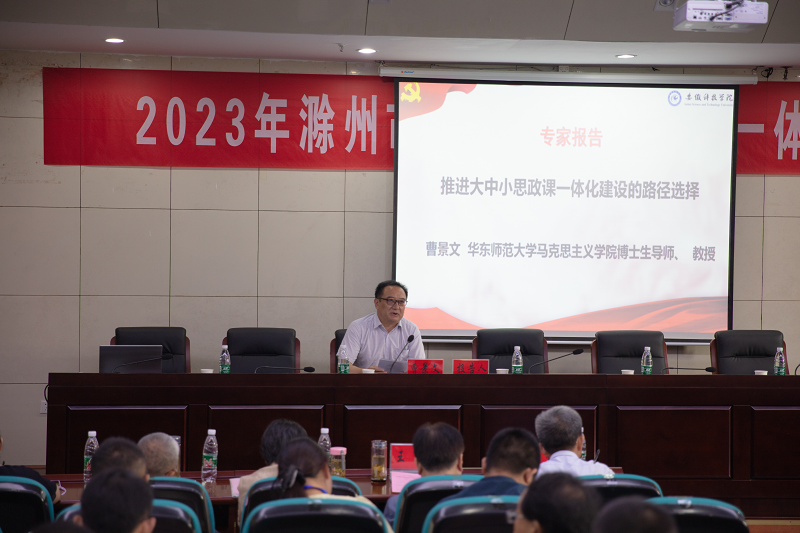 为深入学习宣传贯彻党的二十大精神,贯彻习近平总书记关于思政课建设的重要论述,持续推动滁州市大中小学思政课一体化建设内涵式发展,8月18日上午,由云博网页版、滁州市教育体育局主办,云博网页版马克思主义学院承办的2023年滁州市大中小学思政课一体化教学展示活动在云博网页版凤阳校区第一报告厅举行。滁州市委教体工委委员、滁州市教体局副局长徐赟,云博网页版马克思主义学院党总支书记杨仕勇出席开幕式并致辞。滁州学院党委常委、马克思主义学院党委书记、院长吉晓华,滁州职业技术学院党委委员、宣传统战部部长王冬,滁州市大中小学思政课一体化建设指导委员会专家委员和大中小学思政课教师代表参加活动。开幕式由我校马克思主义学院党总支副书记、院长张德化主持。