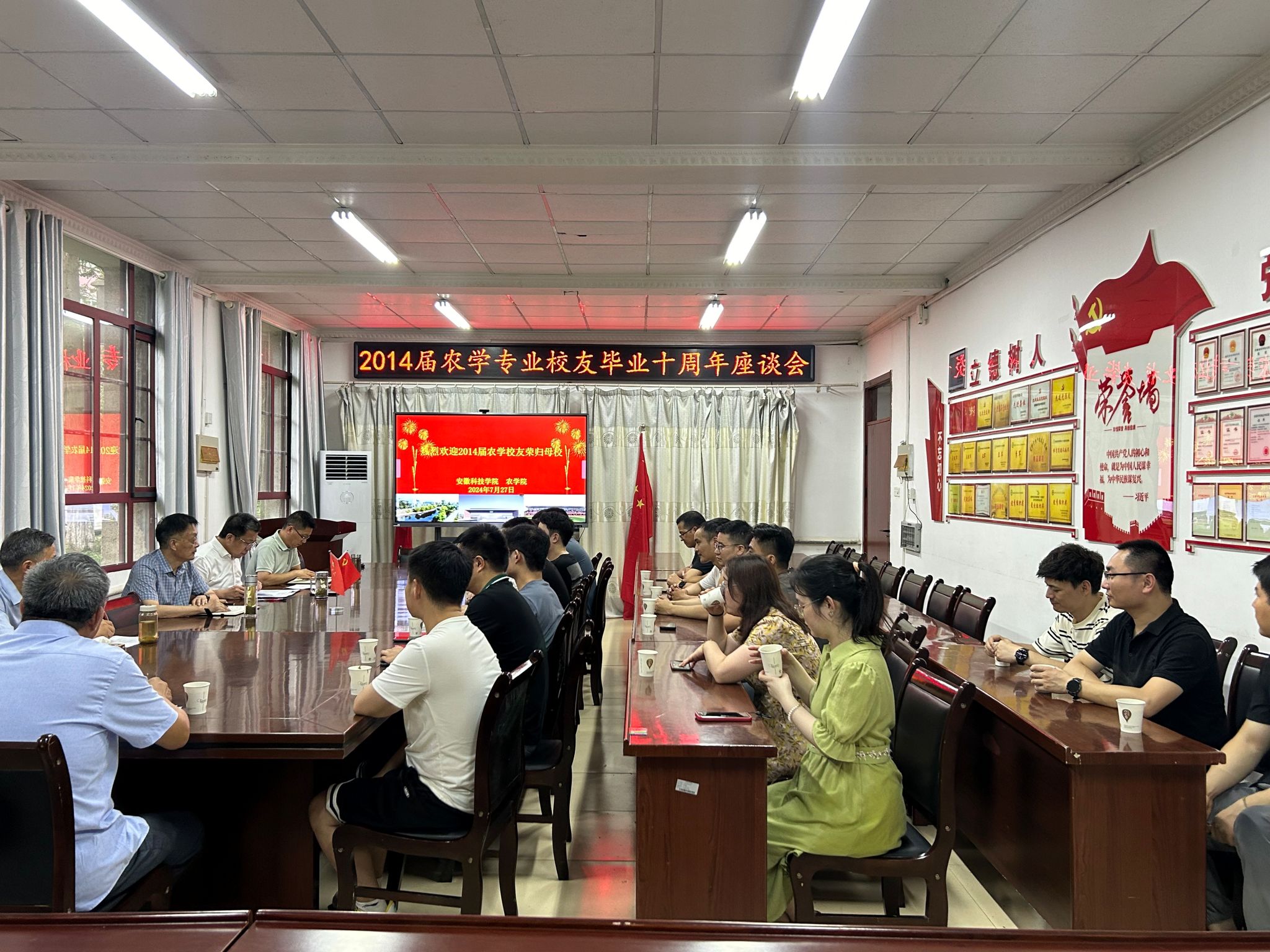 2014届农学专业校友从祖国各地齐聚母校,共叙同窗友情,体验安科变化,争为发展献计。7月27日下午农学院在学院会议室举行2014届农学专业校友毕业10周年座谈会。2014届农学专业班班主任、农学院院长崔广荣,授课教师代表、农学院党政领导等出席座谈会。