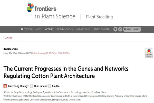 6月9日,我校农学院作物生物技术中心的黄先忠教授团队应邀在国际著名期刊Frontiers in Plant Science发表了题为“The current progresses in the genes and networks regulating cotton plant architecture”的综述文章。Frontiers in Plant Science期刊现位列JCR 1区(Q1)、中科院SCI生物大类和植物科学小类二区、TOP期刊,在植物科学和生物学等学科中,文章总引用次数排名全球第一,最新影响因子为5.753,在植物学领域期刊中处于领先地位。
