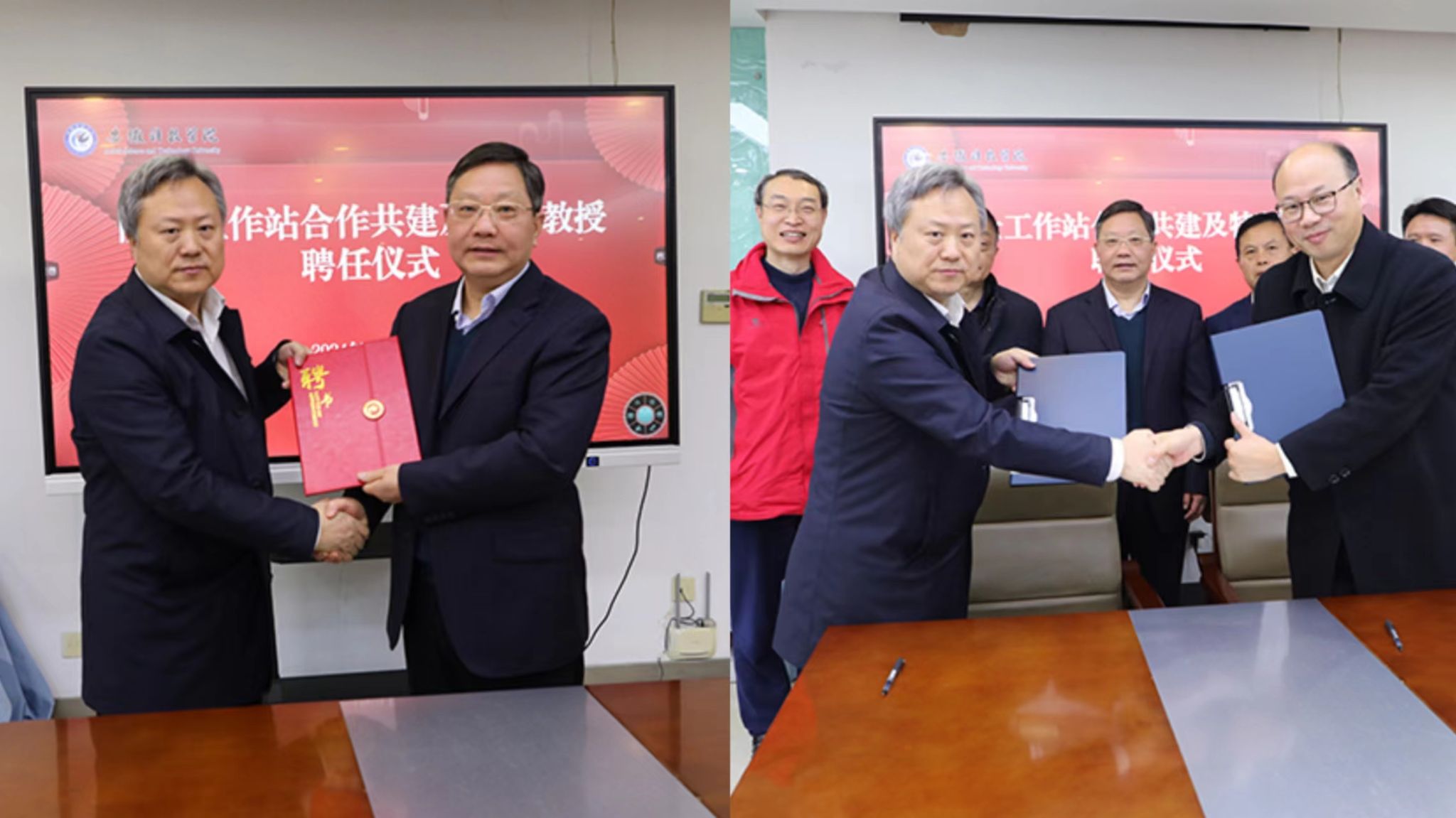 王孝义简要介绍相关学院学科团队的建设发展情况,指出院士工作站的申报建设和潘灿平院士的加入,将进一步拓展学校学科和科研团队的发展空间。学校将大力支持院士工作站的申报及建设,助力青年教师成长。会上,王孝义代表学校与潘灿平院士签订了特聘教授聘任协议书。