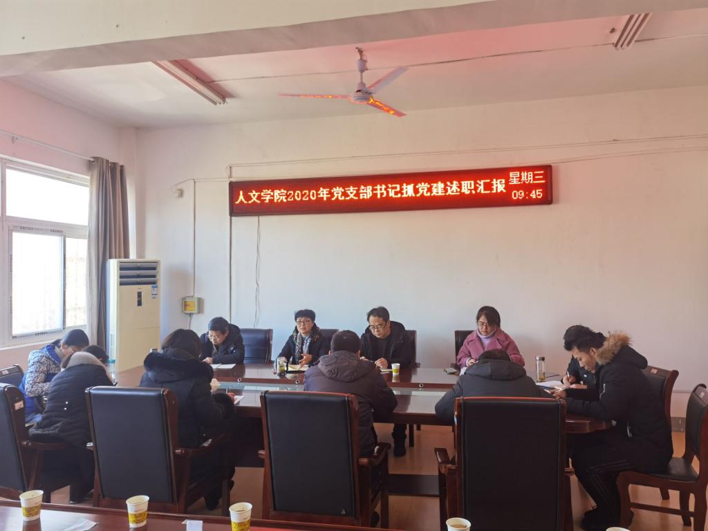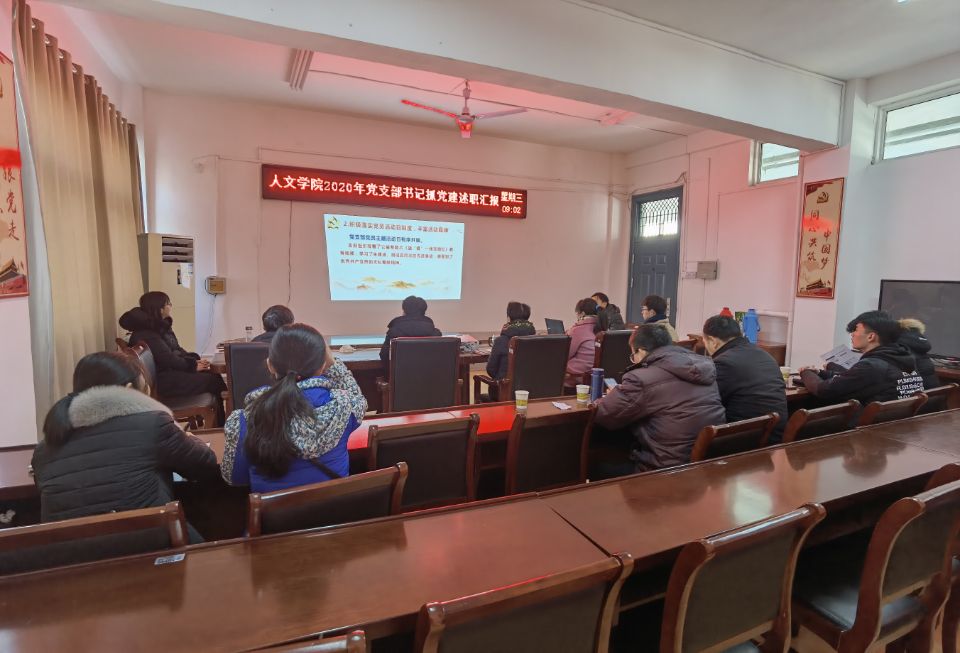 为深入学习贯彻习近平新时代中国特色社会主义思想,落实党的十九大和十九届四中、五中全会精神,坚决落实党风廉政建设各项工作要求,坚持党要管党、全面从严治党。根据《中共云博网页版委员会关于开展2020年度基层党组织书记抓党建述职评议考核工作的通知》文件要求,人文学院于1月13日上午在学院会议室召开2020年度基层党支部书记抓党建述职评议会。学院党总支委员、党支部委员、工会主席、民主党派和无党派教师代表以及学生党员代表参加。会议由党总支书记杜士凤主持。