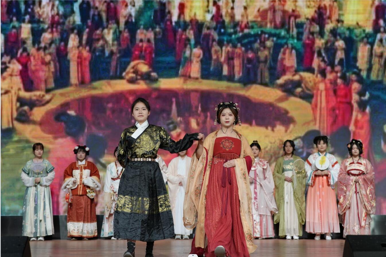 开幕式后,同学们精心准备的文艺节目精彩呈现。歌曲串烧中,演员的精彩演唱赢得了阵阵掌声,《霜雪千年》融合了中国传统舞蹈和现代舞蹈元素,深刻体现了爱情和人生的美好与悲壮;小品《“典”亮我家》以幽默风趣的表演,引得全场哈哈大笑;曲调优美、旋律悠扬的《琵琶语》切实展现了民乐的魅力和神韵……晚会最后,一首《读中国》在演员们倾情朗诵中完美落幕。