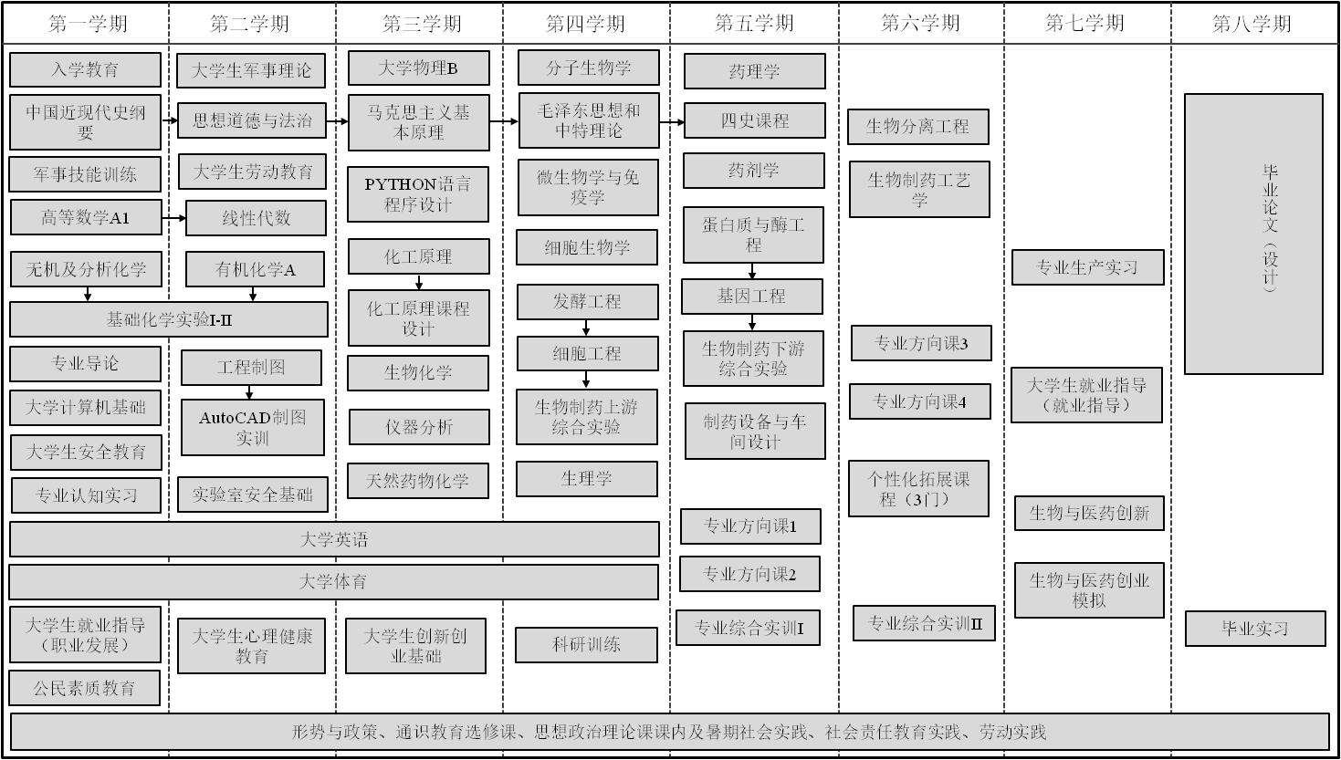 生物制药专业2021版本科培养方案课程地图
