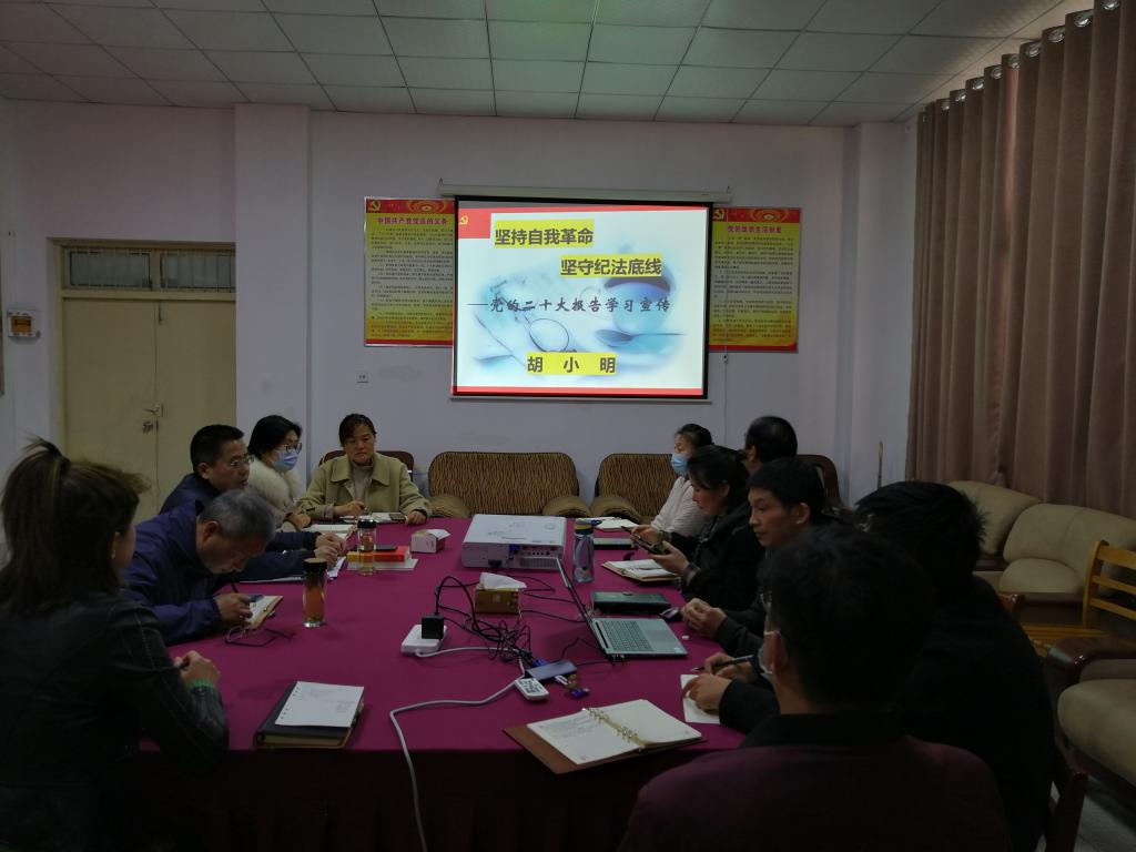 汪徐春带头领学了习近平新时代中国特色社会主义思想和党的二十大精神、党的二十届二中全会精神、省委十一届四中全会精神、党史学习教育等一系列文件。支部纪委委员胡小明以贯彻落实党中央全面从严治党、全面依法治国的战略布局为切入点,为大家上了一堂题为“坚持自我革命 坚守纪法底线”的党课。按照学思用结合、知信行统一的思路,他从“坚持自我革命、严守党的纪律、坚守法律底线”三个方面向大家作了一一阐述。