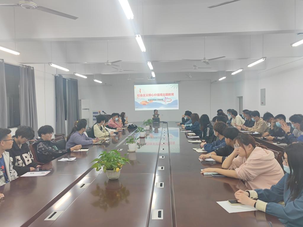为培育和践行社会主义核心价值观,激发同学们建设美好校园,树立正确的世界观人生观价值观,以更好的精神面貌迎接党的二十大胜利召开,5月26日晚,信息与网络工程学院于尚行楼B418会议室召开社会主义核心价值观学习讨论会议,本次会议由专职辅导员丁阿敏主持,学院入党积极分子参加会议。