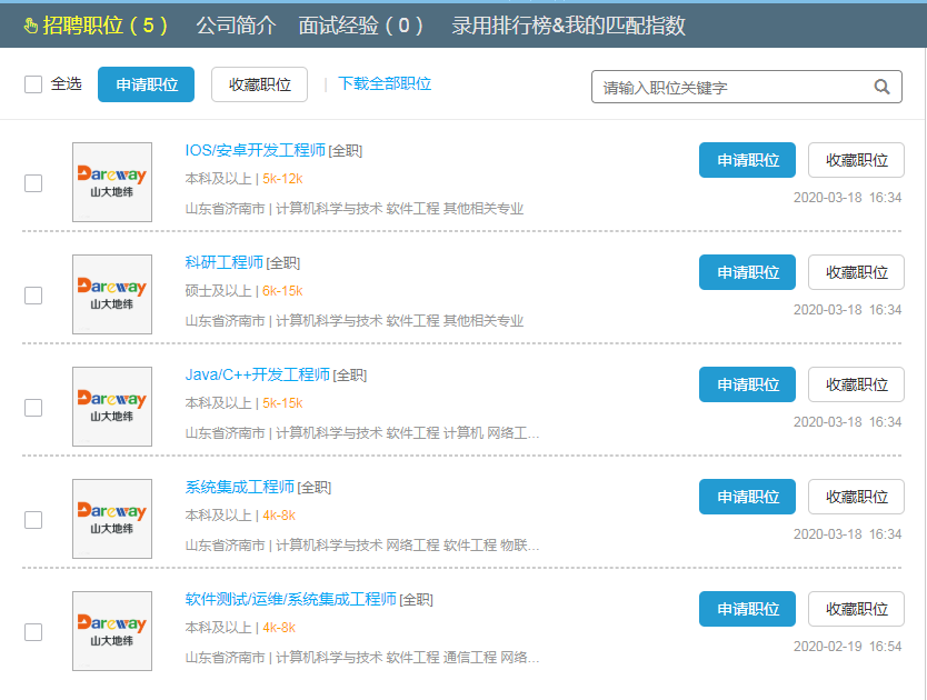 上一条:2020年合肥市高新区线上招聘会 下一条:云博网页版2020届毕业生空中双选会